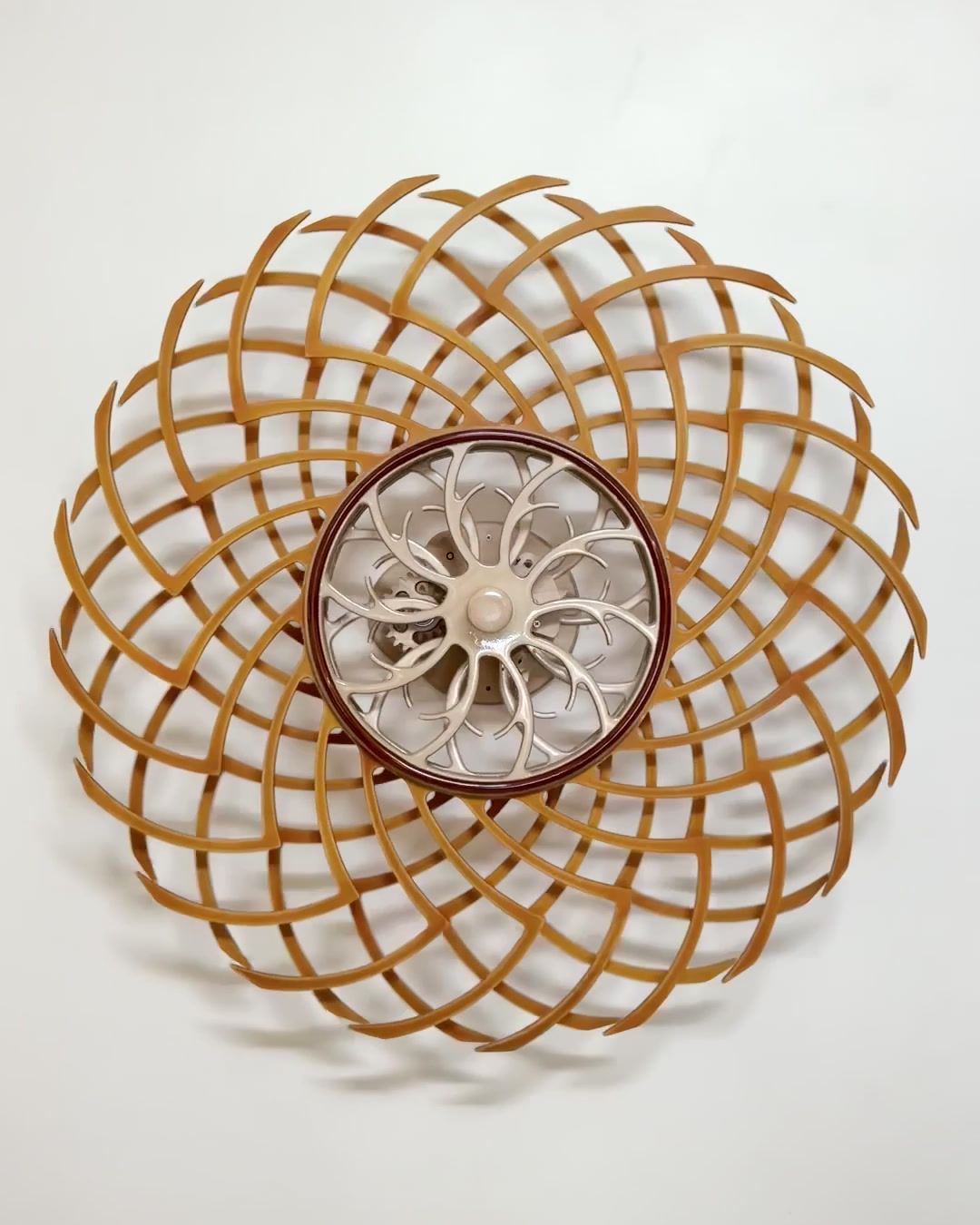 GRAVITON is a wall mounted mechanical kinetic sculpture made of premium Birch-wood creating mesmerizing fractal like patters. As you witness the piece, you experience an endless loop of the beautiful geometric shapes evolving & absorbing.