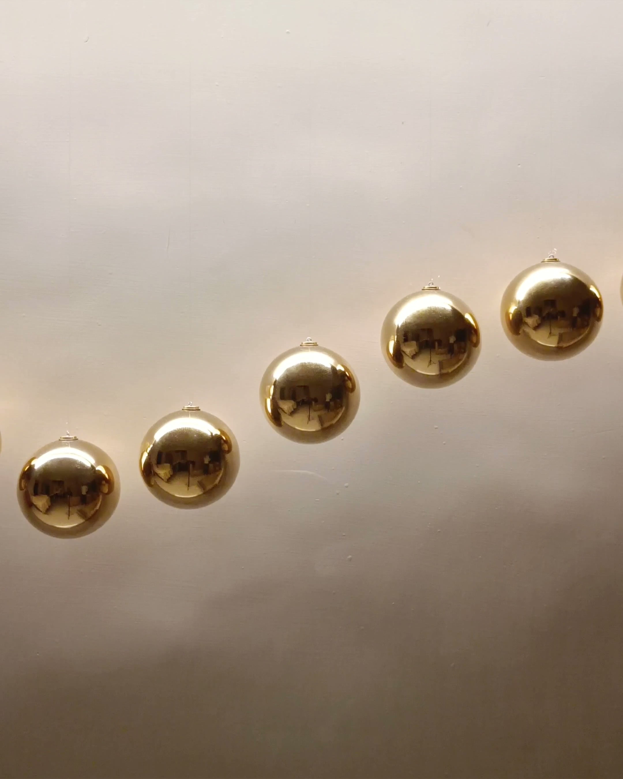 Crafted with precision where each gold sphere is meticulously placed to capture the beauty of waves. A visual poetry that speaks without words, almost like music for the eyes.